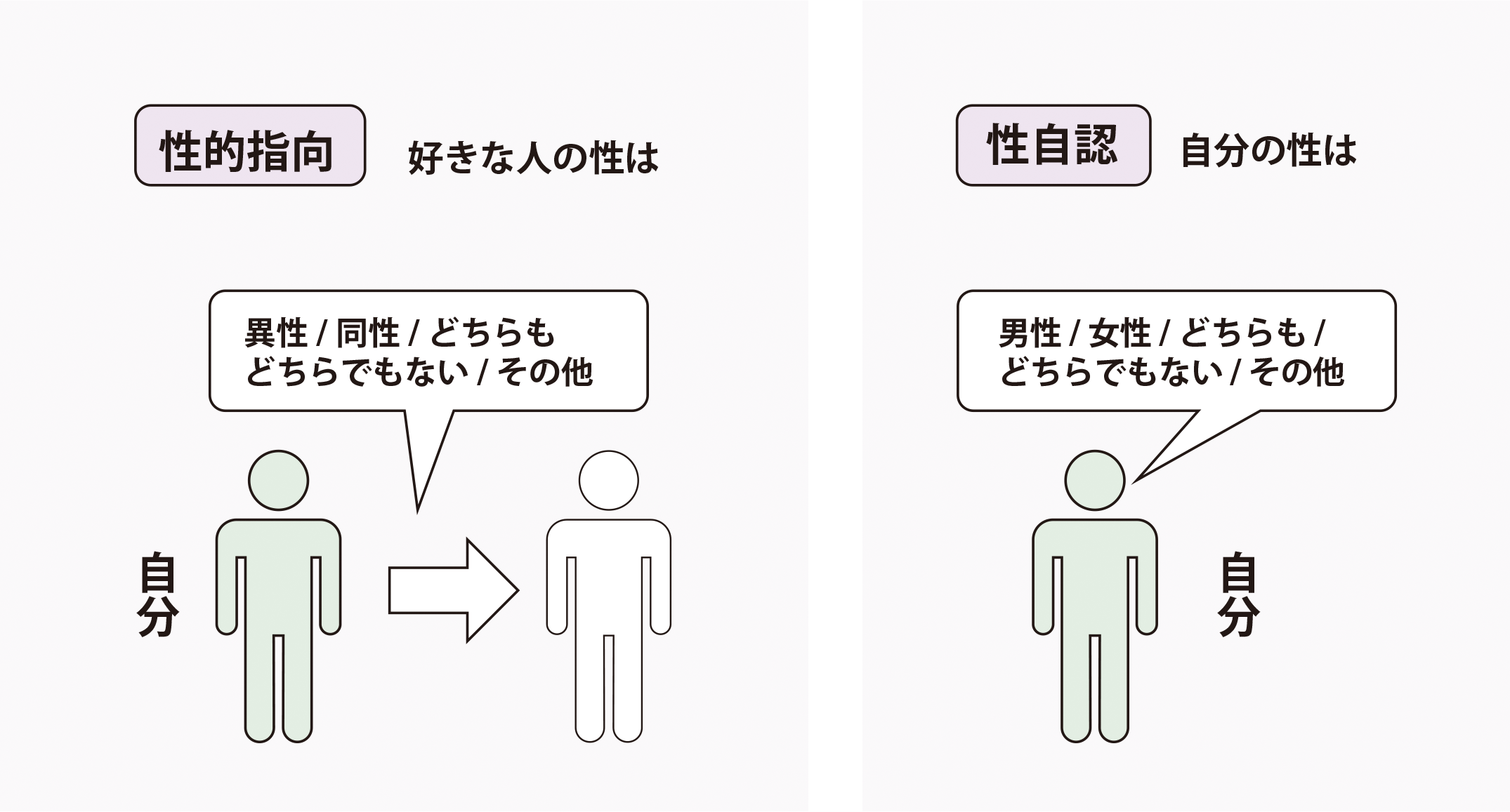 性的指向は、恋愛や性愛の対象がどの性に向いているかを、性自認は、自分が認識している自分の性別を指します。LGBTsに関して言えば、性的指向は主にLGBに関すること、性自認は主にTに関することと言えます。しかし、性的指向や性自認は、LGBTsに限らず、他のあらゆる人にも関わることです。 性的指向や性自認は、先天的なものと後天的なものが複雑にかけ合わさって決まります。人間の性が本来的に多様であることに由来するもので、人権として尊重されるべきものです。